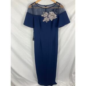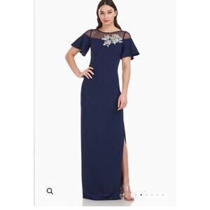 NWT JS Collections Fleur Beaded Column Gown Blue Size 4