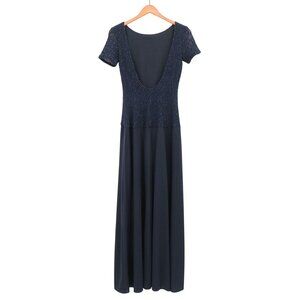 NWT JS Collections Navy Blue Long Low Cut Scoop Back Short Sleeve Gown Dress 8