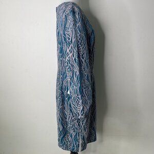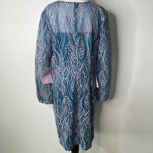 NWT JS Collections Women's Blue Aqual Long Sleeve Embroidered Midi Dress Size 14