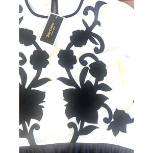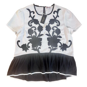 NWT JUICY COUTURE EMBRODERED BLACK AND WHITE RUFFLE TOP SZ10
