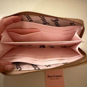 NWT JUICY COUTURE JUICY ROMANCE GUSSET SINGLE ZIP AROUND WALLET BAG PECAN