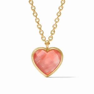 NWT JULIE VOS HEART PENDANT NECKLACE. NEW WITH TAG, NEVER WORN. IRIDESCENT BLUSH PINK GLASS PENDANT. ROLO GOLD TONE CHAIN. 24K GOLD PLATED. PENDANT MEASURES 1.5 INCHES IN HEIGHT. SPRING CLASP CLOSURE. CHAIN IN APPROXIMATELY 36 INCHES IN LENGTH. CAN BE WORN LONG OR SHORT.