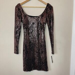 NWT JUMP APPAREL Stretch Sequin Open Back Mini Dress in Espresso, XS