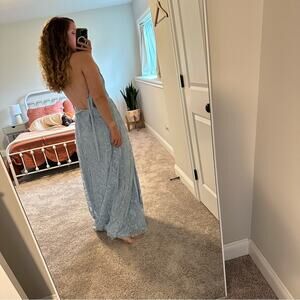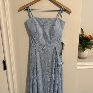I am so in love with this gorgeous brand new with tags high end JUMP Apparel light blue structured glitter lace strapless maxi dress/gown
