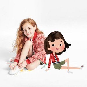 Our limited edition bomber inspired by Juno Valentine and the Magical Shoes—a new book from influencer and mom, Eva Chen. Detailed with bandana print and front pockets.