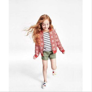 Our limited edition bomber inspired by Juno Valentine and the Magical Shoes—a new book from influencer and mom, Eva Chen. Detailed with bandana print and front pockets.
