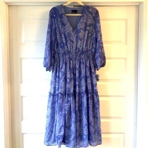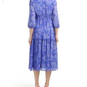 NWT JUST TAYLOR Forget Me Not Paisley Midi Dress Cobalt Chiffon 16