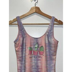 NWT Jac Vanek Tie-Dye "Don't Be A Prick" Cactus Graphic One-Piece Women's Swimsuit Size M