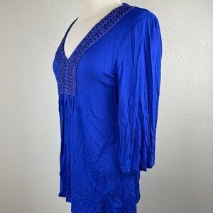NWT JW Style Blue Stretch V-Neck Top Size M