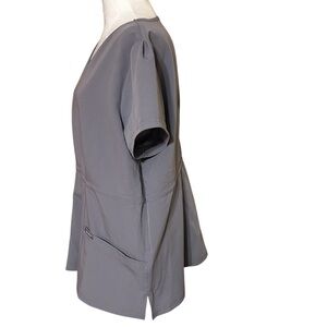 Jaanuu Gray Top. 2 front pockets. V-neck. Side zip. Wrinkle & fade resistant. Moisture wicking. New with tags.