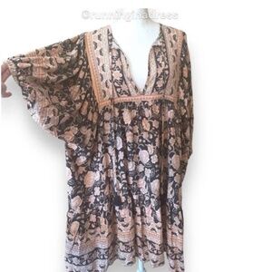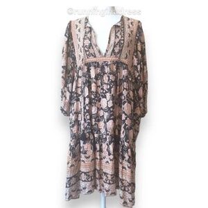 NWT Jaase Alice Quartz Print Charcoal Peach Boho Mini Dress
