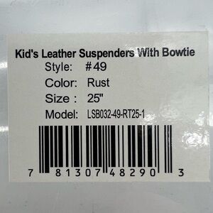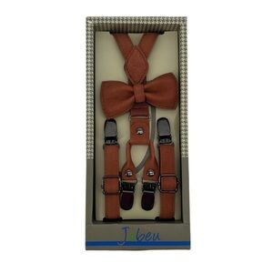 NWT Jabeu Rust Brown Leather Suspenders With Bow Tie Size 25” Kids