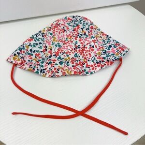 NWT Jacadi Paris Liberty Fabric Red Floral Print Cotton Hat with Tie