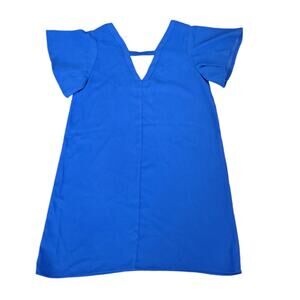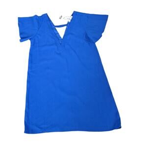 NWT Jack BB Dakota Rayon Crepe Deep V Short Sleeve Blue Shift Dress Size Large