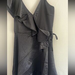 Steal the limelight in this stunning car me use wrap dress with ruffle trim.