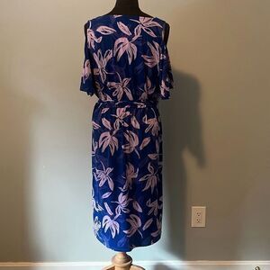 NWT Jaclyn Smith Womens Floral Cold Shoulder Dress Blue Large