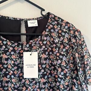 Short sleeve and ditzy floral print. Brand new with tags. Black background with pinks and blues. Sheer sleeves. Size US 8
