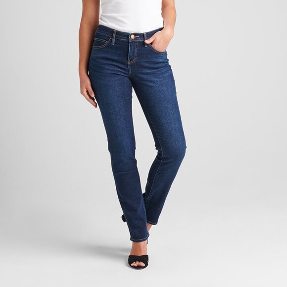Looking for a tried-and-true straight leg jean that smooths, supports and lifts? Your search stops with Ruby. This fit is crafted with the classic mid rise you love and also features an updated take on our Best Kept Secret technology. That means interior elastic at the waist that holds you in, a contoured, slightly narrower waistband that prevents gapping and a design that perfectly flatters and lifts your bum. Finished with classic pocketing and classic dark indigo wash with subtle whisker patterns.