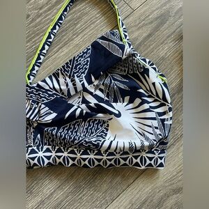 Dive into style with this tropical print swim top, featuring a vibrant mix of navy and white with a hint of lime green. Perfect for a chic beach look.