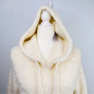 NWT James Perse Crème Fuzzy Wool Blend Sherpa Hooded Hoodie Sweater