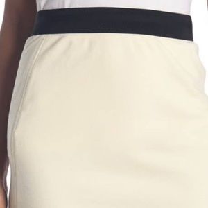 NWT NEVER WORN. From pet and smoke free home. In perfect condition. Ivory color with contrast elastic black waist A contrasting elastic band defines your waist as a part of a cute figure-hugging skirt that you can dress up and down anytime during the week. - Contrast elastic waist - Pull-on style - Solid color - Back slit - Approx. 29" length 100% cotton Machine wash