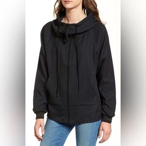 Brand new black side snap jacket ! Zippered detail down front with snaps on sides. Has pockets and drawstring hoodie.