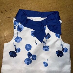 Elegant dress with a blue bow collar and white and floral accents. New with tags. Fully lined. Retails for $79