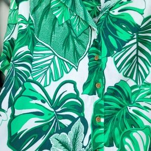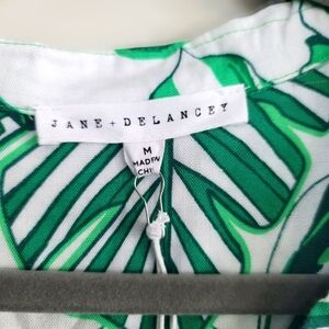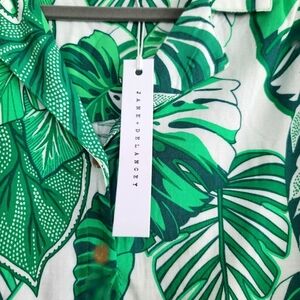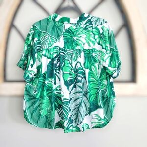 *NWT* Jane + DELANEY Green Monstera Print Cropped Button Up Chic Blouse, Sz M