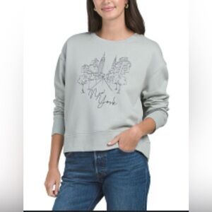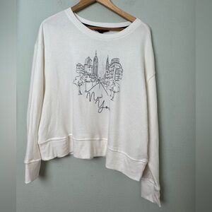 NWT Jane + Delancey Cream Embroidered New York City Cityscape Crew Neck Sweater