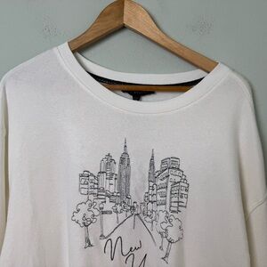 NWT Jane + Delancey Cream Embroidered New York City Cityscape Crew Neck Sweater Size Large