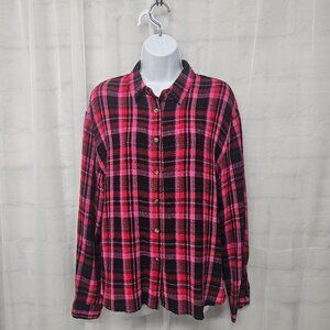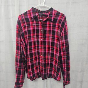 NWT Jane & Delancey Pink Black Plaid Button Down Blouse Grunge Punk Boho M
