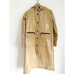 NWT Jane Post Raincoat hooded Rain Slicker in Beige XS