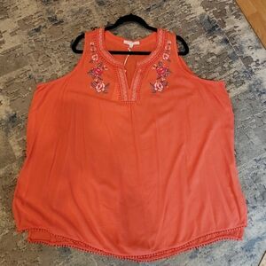 NWT Jane and Delancey Embroidered Coral Sleeveless Top Size 2X Flowy Crepe