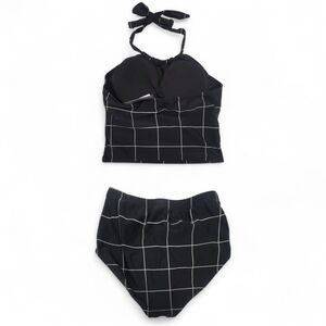 NWT Janela Bay Black Windowpane Halter Tankini Size Medium Modest Swimsuit Set