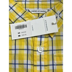 NWT Janie Jack Boys Plaid Button Down Size 18-24 Months Yellow Blue And White