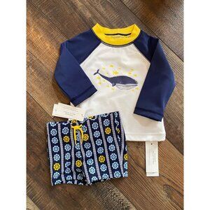 NWT Janie and Jack Boys 3-6 Month Blue Fish Swim Suit Set UPF 50+