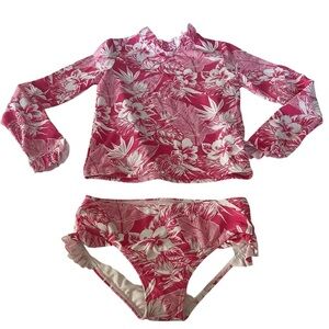 For fun in the sun, our tropical floral rash guard set has them covered. With ruffle details and UPF 50+ sun protection to keep them stylishly safe. Responsibly made with recycled polyester fabric.