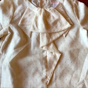 Janie and Jack ivory with gold polka dot blouse.