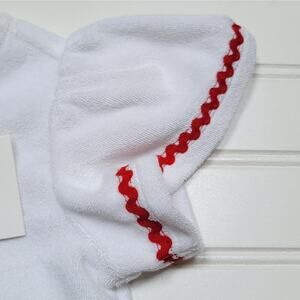 NWT Janie and Jack Ric Rac Terry Swim Cover-Up Dress, size 18-24 months, white and red, flutter sleeves, buttons at back.