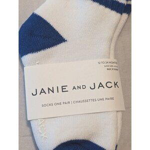 NWT Janie and Jack socks kids shoe size 12 - 24 M white blue stripe crew 1 pair