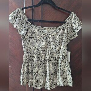 Cream and black Japna blouse. New with tags. Ruched backing, can be work on or off shoulders.
