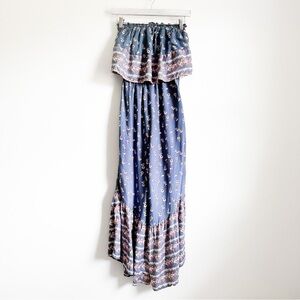 NWT Japna Blue Floral Strapless Cropped Flare Leg Boho Jumpsuit sz XS