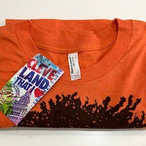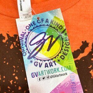 This product is a brand new GV Art Design t-shirt with tags featuring ex-Cleveland Browns player Jarvis Landry. The shirt is in the team's colors of orange and brown, and is designed for men in size large. It is a great way for fans of the NFL team to show their support for the Cleveland Browns.