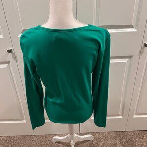 This is a new with tags Jason Alexander Christmas long-sleeve small green t-shirt featuring a Cajun Santa motif of Santa Claus with an alligator pulling his sleigh. Perfect for Louisiana residents or Cajun culture enthusiasts. 60% cotton, 40% polyester. Please check my other listings for similar items as I will bundle to save you postage costs.