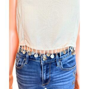 NWT Jason Wu Beige Linen Blend Beaded Shells Crop Top