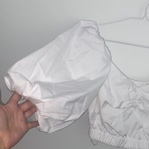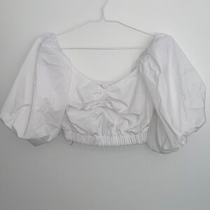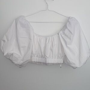 NWT Jason Wu Cropped White Puff Sleeve Sweetheart Top