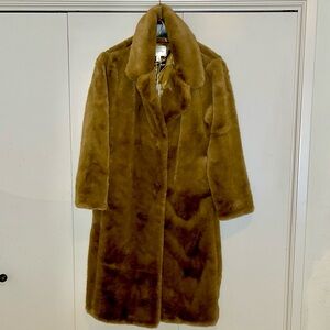 NWT Jason Wu Luxurious Golden Brown Faux Fur Coat Super Soft Cozy Warm Stylish