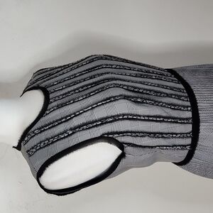 Measures 48" long from shoulder to hem, 17 1/2" armpit to armpit, 14" across the waist.
