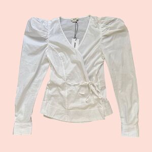 NWT Jason Wu White Wrap Blouse Puffy‎ Sleeves Size S