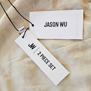NWT Jason Wu Linen Blend Two Piece Shell Fringe Crop Top Wide Leg Pleated Pant 6